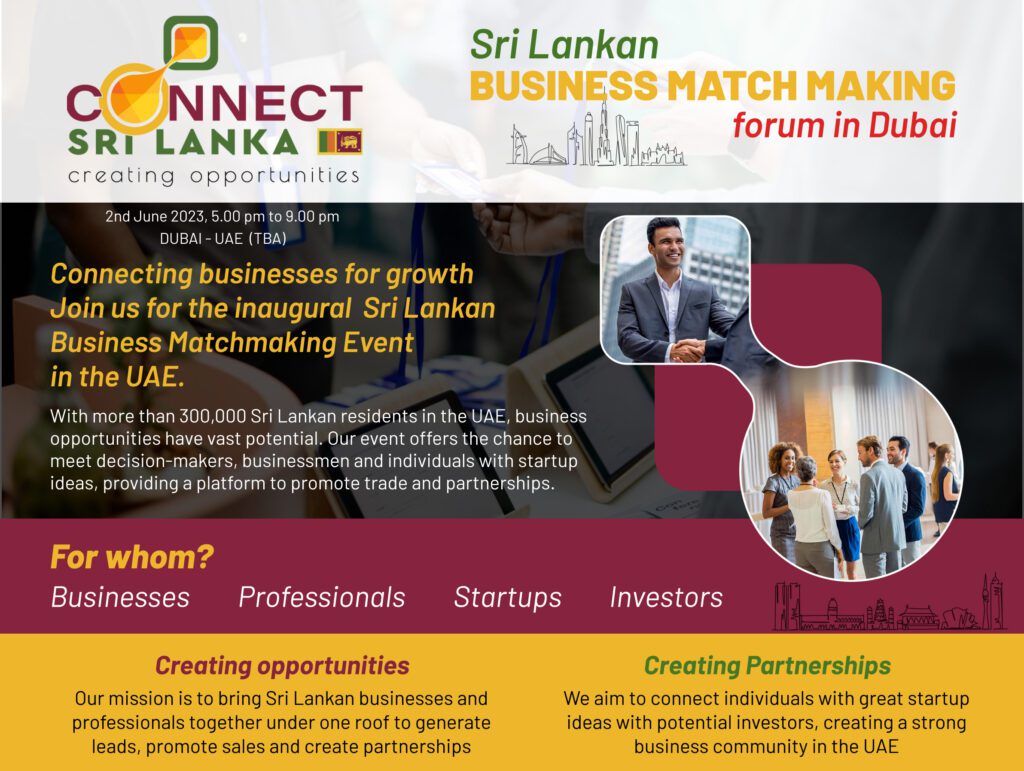 Connecting businesses for growth . Join us for the inaugural Sri Lankan Business Matchmaking Eventin the UAE.
