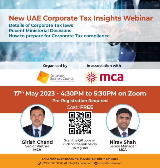 The Sri Lankan Business Council (SLBC) will be hosting a free webinar on the new UAE Corporate Tax Laws. The webinar will be held on Wednesday, […]